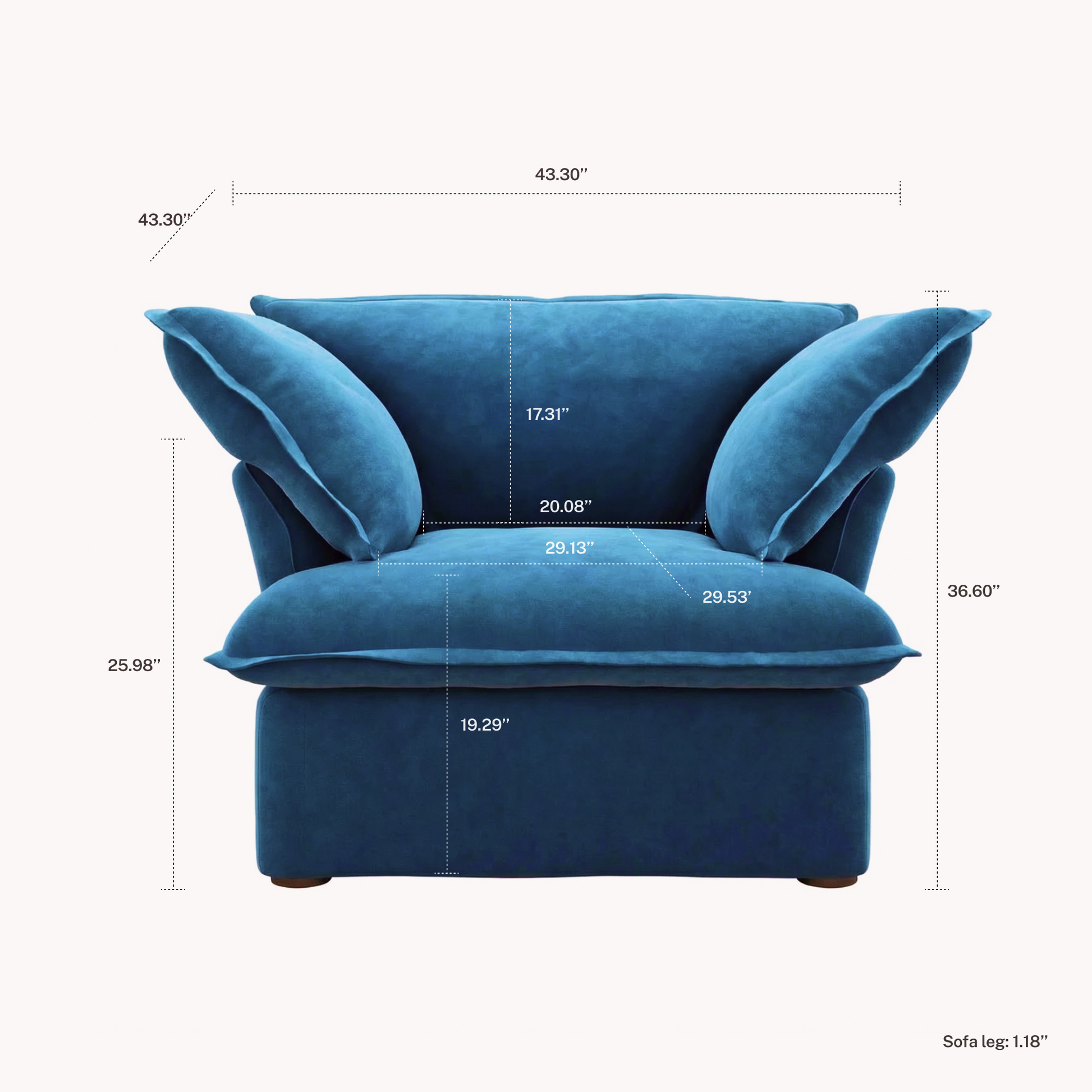 Each seat module measures 31.5” wide x 29.5” deep, giving you plenty of room to lounge, sit cross-legged, or stretch out with ease.